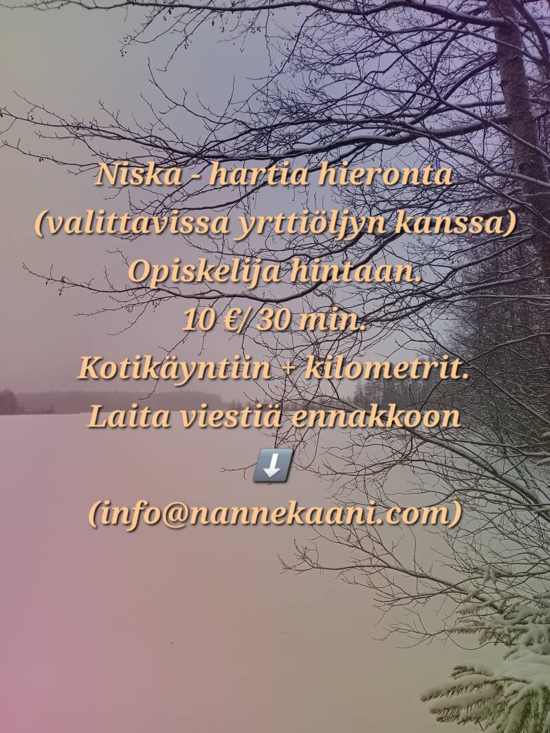 VARAA HIERONTA-AIKA tammi- maaliskuulle ENNEN VUODENVAIHDETTA JA HYÖDYNNÄ opiskelijatyön ALENNUS!!